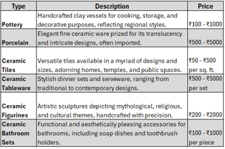 Economic Livelihood: The ceramic industry provides employment opportunities to a vast number of artisans and workers across the country, sustaining livelihoods and preserving traditional crafts.